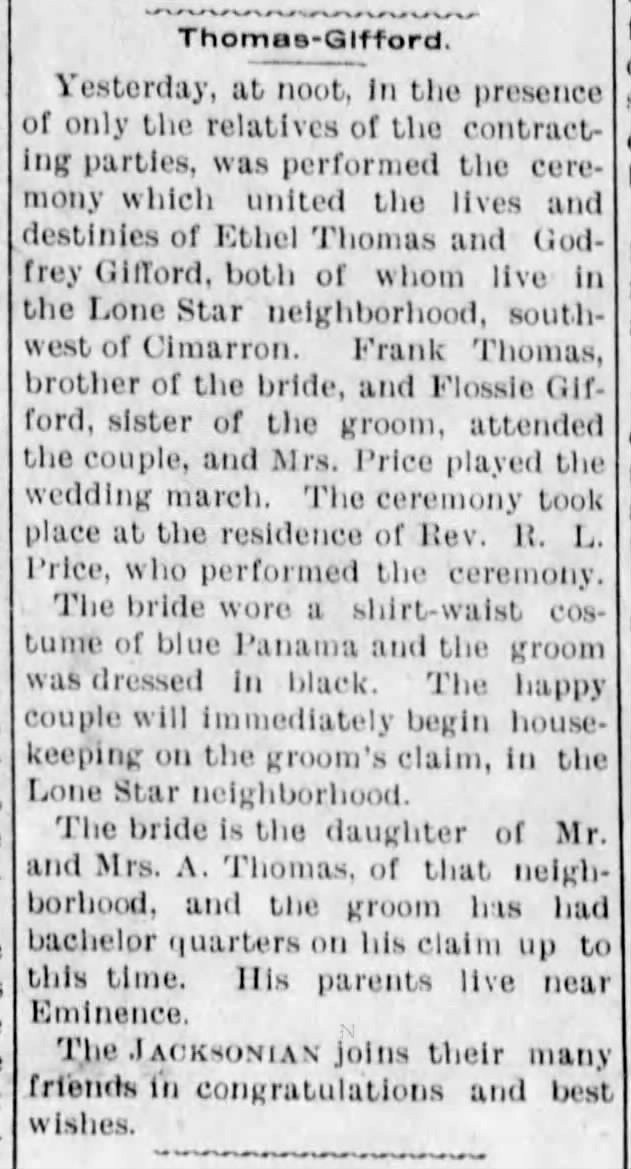 Death of Levi Jennings Gifford 22 Apr 1902, Tue Great Bend Beacon (Great Bend, Kansas) Newspapers.comINFORMATION FOUND IN THIS DOCUMENT to be addedGreat Bend Beacon (Great Bend, Kansas) 22 Apr 1902, Tue Page 3 (via Newspapers.com)Death of Levi J. Gifford. The body of...